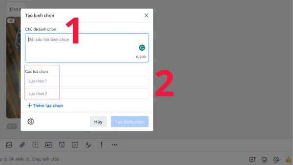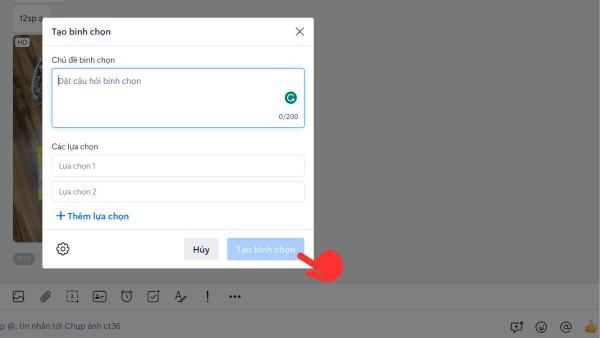 Bước 3: Sau khi nhập xong thông tin, nhấn “Tạo bình chọn” để hoàn tất. Nếu muốn hủy thao tác, bạn có thể chọn “Hủy”, khi đó cuộc bình chọn sẽ không được gửi đến nhóm.