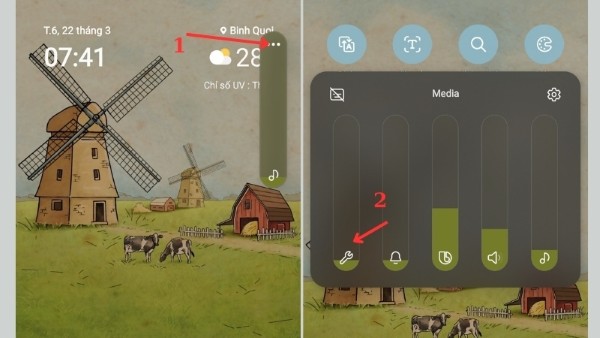 – Thay đổi âm lượng bàn phím: Nhấn nút tăng hoặc giảm âm lượng trên điện thoại để hiển thị Thanh điều chỉnh âm lượng -> Nhấn vào dấu ba chấm ngang (⋯) để mở rộng -> Tìm thanh âm lượng có biểu tượng cờ-lê, đây là thanh điều chỉnh âm lượng hệ thống -> Kéo thanh trượt lên hoặc xuống để tùy chỉnh mức âm lượng cho bàn phím.