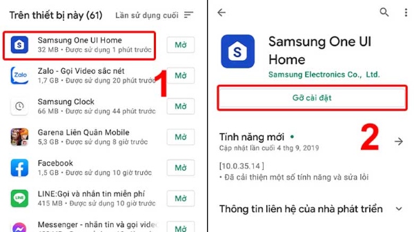 Chi tiết cách xóa ứng dụng khỏi điện thoại Samsung thực hiện như sau: