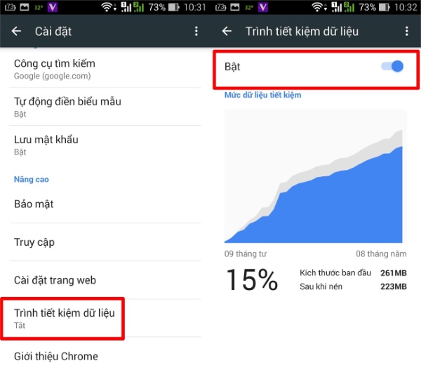 Bước 3: Sau đó, người dùng hãy Bật chế độ tiết kiệm dữ liệu trên điện thoại Samsung lên.