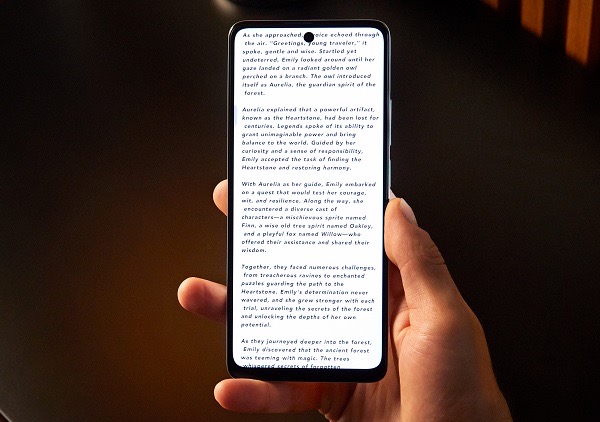 Đặc biệt, màn hình này còn có một lớp phủ chống chói, rất hữu ích với người hay sử dụng điện thoại. Bên cạnh đó, tính năng chuyển sang chế độ giấy màu khi đọc sách còn giúp hạn chế tình trạng mỏi mắt. Đây sẽ là sự lựa chọn tốt dành cho những người thích đọc sách.
