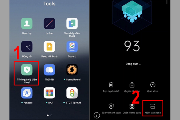 Bước 1: Mở app Trình quản lý điện thoại >> Chọn Kiểm tra nhanh.