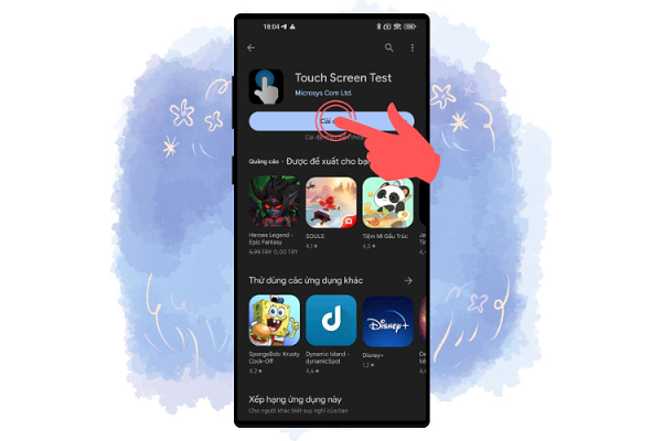 Bước 1: Đầu tiên, người dùng hãy truy cập vào CH Play >> tìm kiếm ứng dụng Touch Screen Test >> Tải ứng dụng về thiết bị.