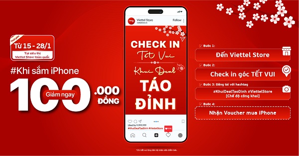 Trong không khí rộn ràng của mùa Tết Nguyên Đán, Viettel Store chính thức ra mắt chương trình “Check-in Tết Vui – Khui Deal Táo Đỉnh”. Đây là một hoạt động đặc biệt, không chỉ mang đến ưu đãi hấp dẫn mà còn tạo nên trải nghiệm mua sắm đậm chất lễ hội cho khách hàng. Chương trình diễn ra từ ngày 15/1 đến 28/1/2025, tức từ 16 đến 29 tháng Chạp âm lịch, tại tất cả các siêu thị Viettel Store trên toàn quốc.