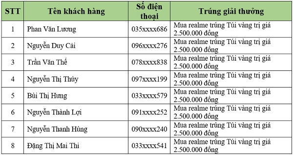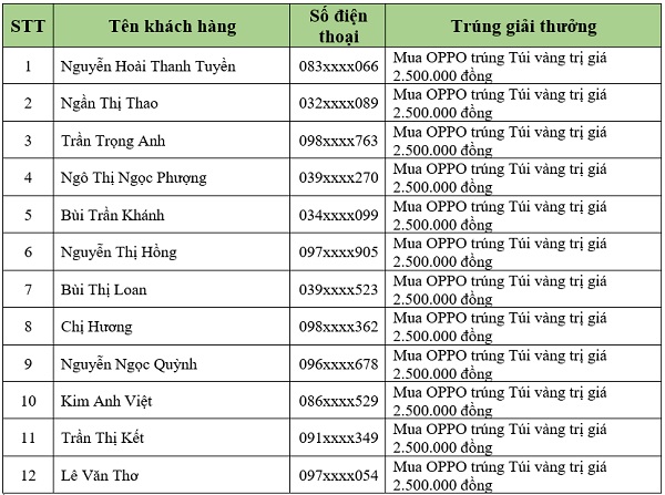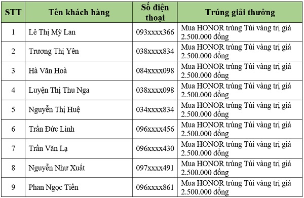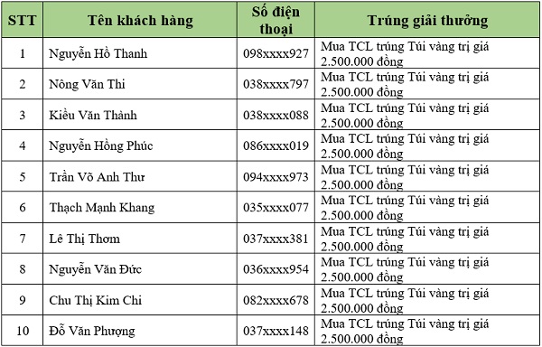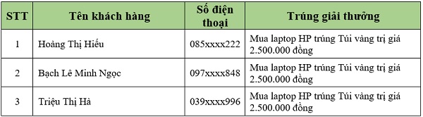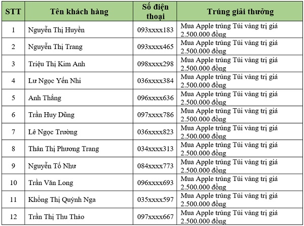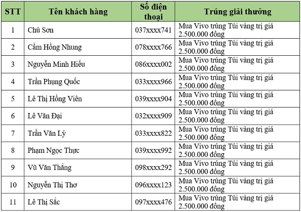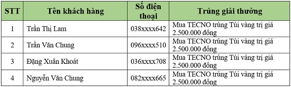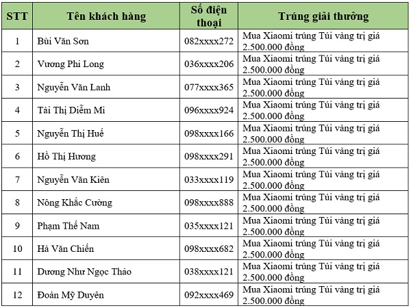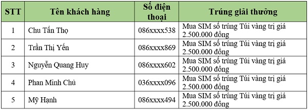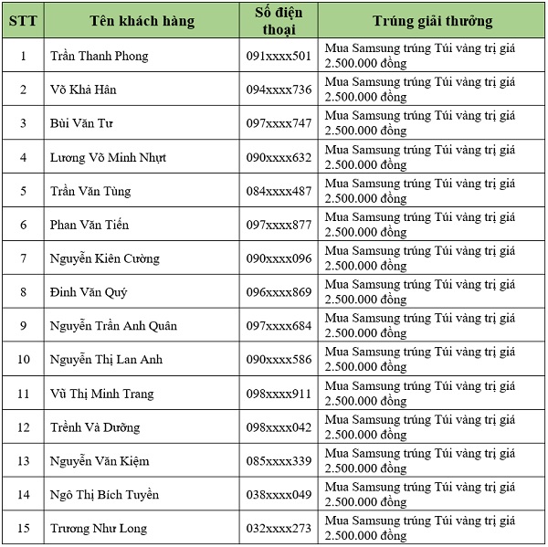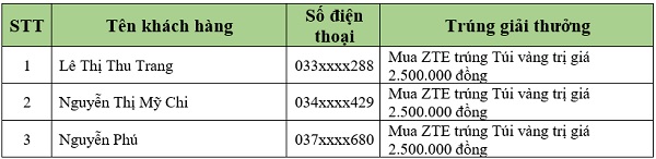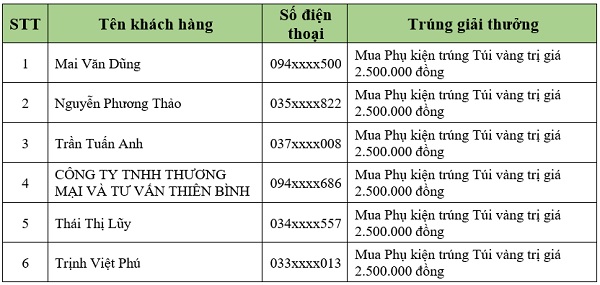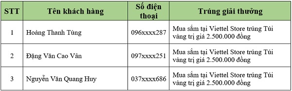 Danh sách khách hàng trúng thưởng tiếp theo sẽ được Viettel Store cập nhật liên tục. Quý khách hàng vui lòng theo dõi tại website: viettelstore.vn.