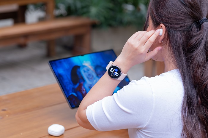 Đang xem phim đến cảnh hay mà tự nhiên con bạn thân gọi tới để hỏi thăm tình hình thì cũng đã có tính năng Auto Switch – Chuyển đổi thông minh, thực hiện vài thao tác chạm thôi là Galaxy Buds2 sẽ tự động chuyển kết nối từ máy tính bảng Galaxy sang điện thoại, thoải mái tám chuyện với nhỏ bạn mà không cần phải đứng dậy tìm kiếm xem điện thoại đang nằm ở đâu.