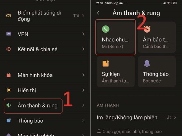 Bước 2: Mở tiếp phần Cài đặt, chọn mục Âm thanh và rung.