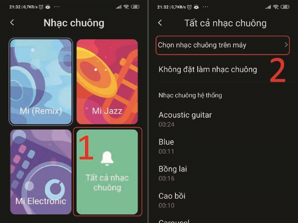 Bước 3: Tại giao diện mới hiện ra, bạn chọn mục Tất cả nhạc chuông >> Chọn nhạc chuông trên máy.