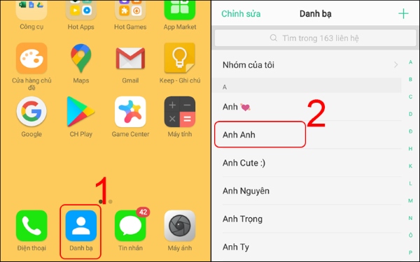 Bước 1: Mở phần Danh bạ lên và chọn số điện thoại muốn cài làm nhạc chuông riêng.