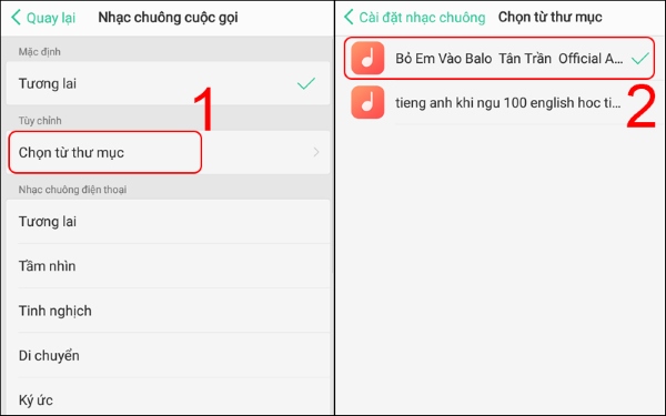 Bước 3: Nhấn vào mục Chọn từ thư mục và chọn bài hát muốn làm nhạc chuông.