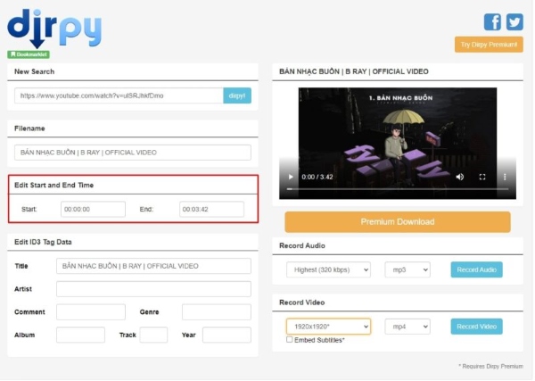 Bước 3: Tiến hành sao chép link nhạc YouTube đã chọn ở trên và dán vào website rồi chọn nút “dirpy!” để tải nhạc từ YouTube về máy.