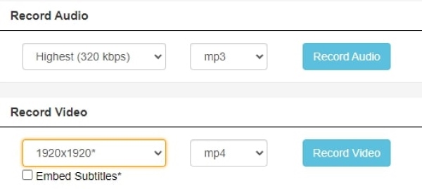 Bước 5: Sau khi hoàn tất chọn đoạn nhạc, bạn nhấn vào Record Audio và chọn chất lượng âm thanh muốn để tải xuống là được.