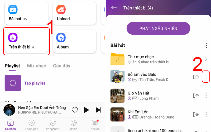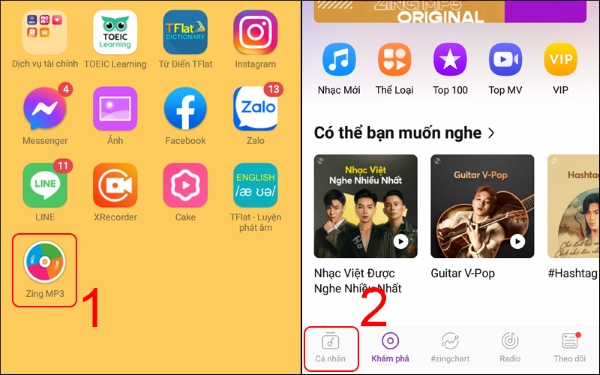 Bước 1: Mở ứng dụng Zing Mp3 trên điện thoại OPPO và chọn mục phần Cá nhân.
