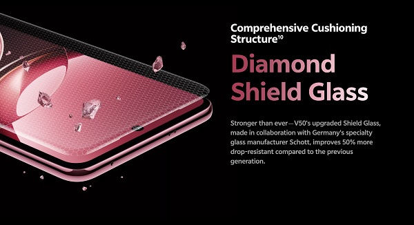 vivo V50 sở hữu màn hình cong bốn cạnh với viền siêu mỏng chỉ 1.86 mm, mang lại trải nghiệm hình ảnh sống động và hiện đại. Điểm nhấn đáng chú ý là kính bảo vệ Diamond Shield Glass của Schott, không chỉ tăng cường độ bền mà còn giúp máy đạt tiêu chuẩn chống bụi và nước IP68/69, đảm bảo độ bền vượt trội.