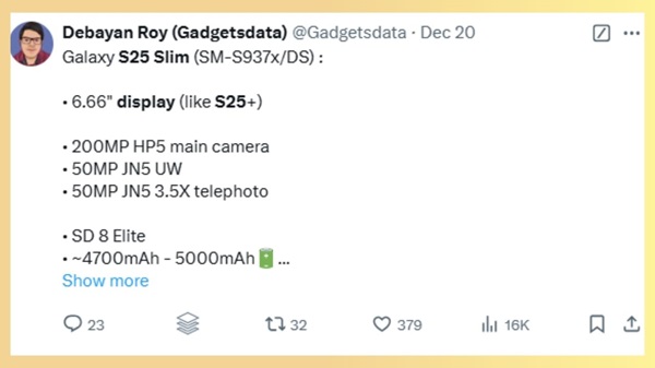 Rò rỉ thông số cấu hình Galaxy S25 Slim