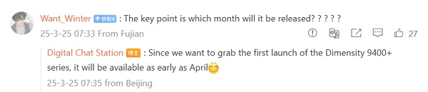 Dự kiến, OPPO Find X8S và Find X8S+ sẽ được ra mắt tại Trung Quốc vào ngày 10 tháng 4, trở thành những smartphone đầu tiên trên thế giới sử dụng chipset Dimensity 9400+. Ngoài ra, Vivo X200S cũng được cho là sẽ trang bị chipset này và ra mắt vào cuối tháng 4.