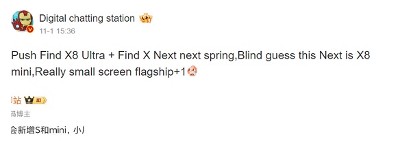 Theo leaker nổi tiếng Digital Chat Station, thông tin OPPO Find X8 Mini cho thấy mẫu điện thoại này có thể sẽ ra mắt cùng với Find X8 Ultra vào đầu năm sau. Điều này cũng trùng khớp với những gợi ý trước đó từ leaker Smart Pikachu.