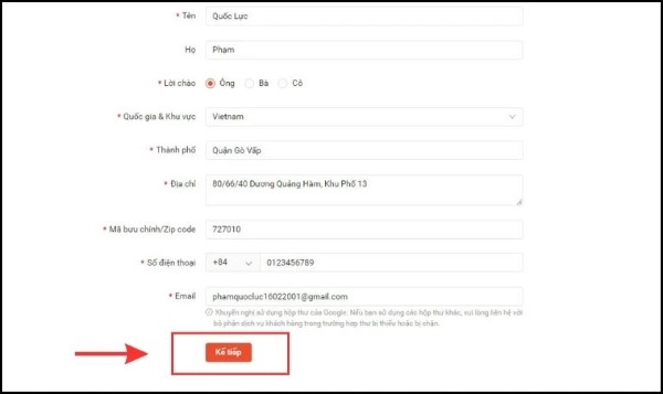 Bước 2: Điền chính xác và đầy đủ các thông tin theo yêu cầu của Shopee > chọn Kế tiếp.
