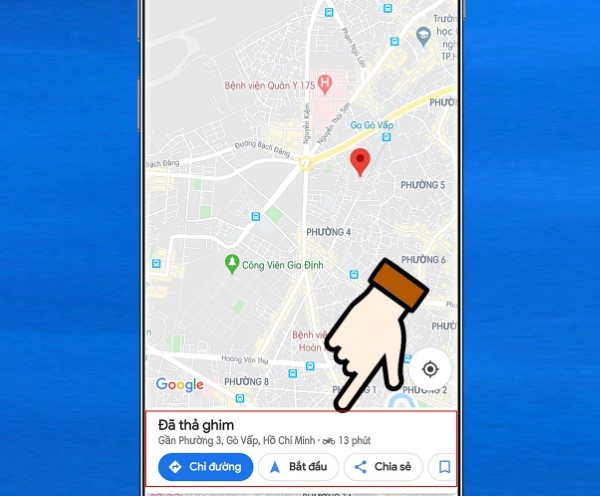 Bước 3: Nhấn vào thông tin hiển thị bên dưới màn hình để xem địa chỉ chi tiết tương ứng với tọa độ vừa chọn.