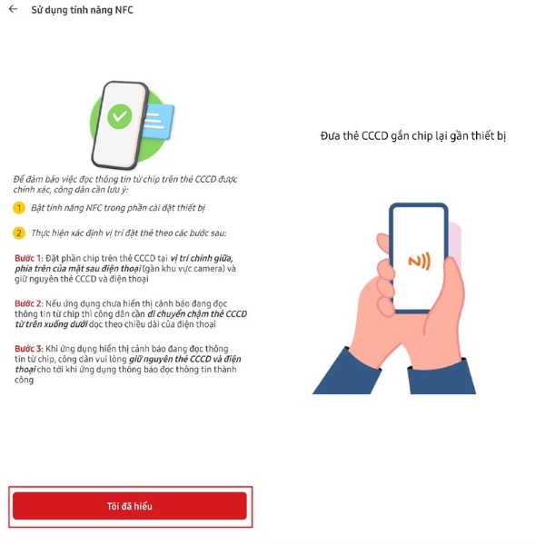 Bước 5: Tiếp đó, trên màn hình xuất hiện màn hình tính năng NFC > bạn nhấn Tôi đã hiểu và làm theo hướng dẫn trên màn hình.