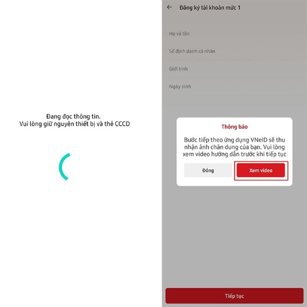 Bước 6: Hệ thống sẽ tiếp tục đọc thông tin của bạn > nhấn Xem video để xem hướng dẫn thu nhận ảnh chân dung của mình qua camera trên máy.