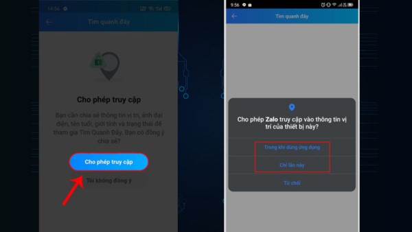 Bước 5: Một thông báo yêu cầu cấp quyền truy cập vị trí sẽ xuất hiện. Bạn có thể chọn Trong khi dùng ứng dụng hoặc Chỉ lần này tùy vào nhu cầu cá nhân.