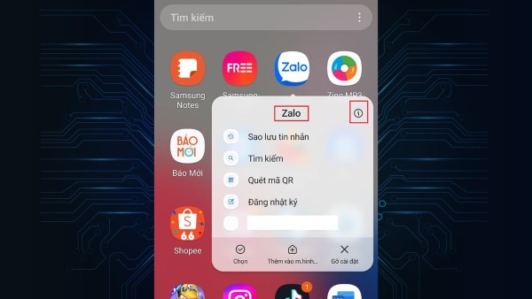 Bước 1: Nhấn giữ biểu tượng Zalo trên màn hình chính điện thoại, sau đó chọn Thông tin ứng dụng từ menu xuất hiện.