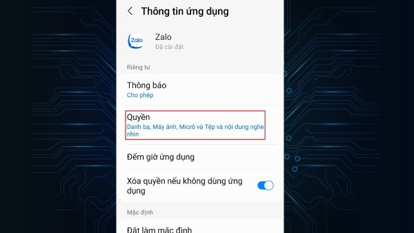 Bước 2: Trong phần cài đặt của ứng dụng, tìm và bấm vào Quyền.