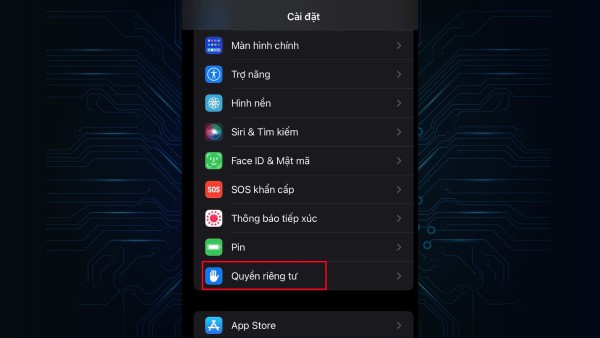 Bước 2: Tiếp tục chọn Quyền riêng tư, sau đó vào phần Dịch vụ định vị.