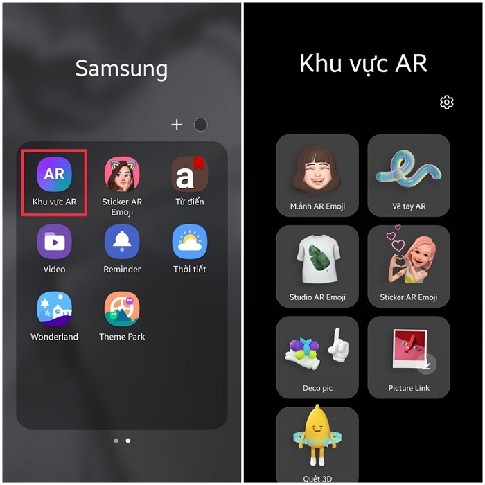 Khu vực AR cho phép chúng ta quét 3D gương mặt của mình và sử dụng những tính năng thú vị được tích hợp sẵn trên ứng dụng. Bạn chỉ cần bật ứng dụng Khu vực AR trên điện thoại Samsung lên và bắt đầu sáng tạo nhé.