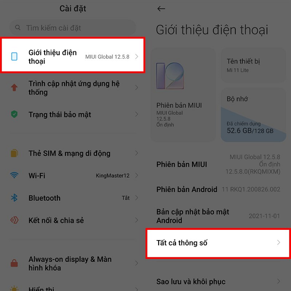 Bước 1: Vào ứng dụng “Cài đặt” -> chọn “Giới thiệu điện thoại” -> chọn “Tất cả thông số”.