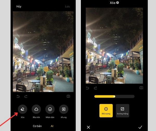 Cách thực hiện như sau: Mở thư viện ảnh lên -> chọn bức hình mà bạn muốn chỉnh sửa -> nhấn vào biểu tượng chỉnh sửa -> chọn “Xóa” và tùy chỉnh độ lớn của đầu bút và tiến hành tô lên các chi tiết thừa trên ảnh.
