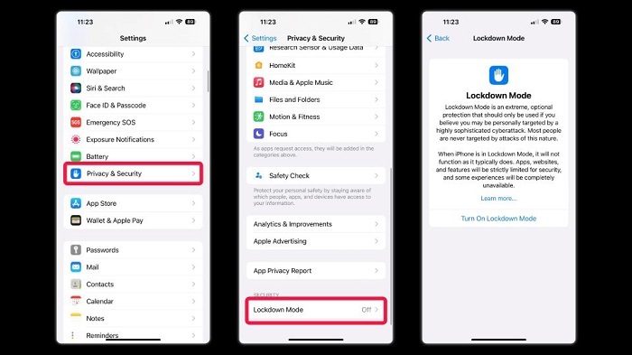 Cơ chế hoạt động của Lockdown Mode là hạn chế những tính năng thường xuyên được người dùng sử dụng như: duyệt web, tin nhắn để phần mềm độc hại không thể tấn công.