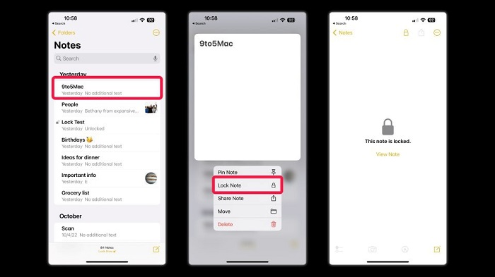 Với tính năng này người dùng có thể khóa lại các ghi chú được coi là quan trọng bằng Face ID, mật khẩu hoặc Touch ID.