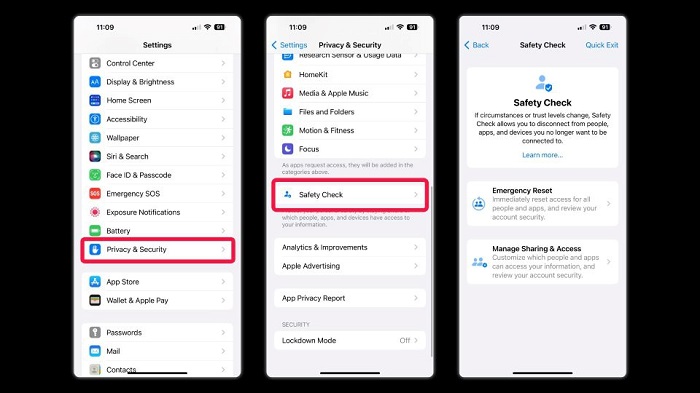 Một tính năng bảo mật mới nhưng rất quan trọng trên iPhone đó là Safety Check. Với tính năng này người dùng có thể xem thông tin liên hệ có quyền truy cập vào lịch hay vị trí motojc ách nhanh nhất. Chưa hết, Safety Check còn hiển thị các quyền được dùng của tất cả ứng dụng trên thiết bị.