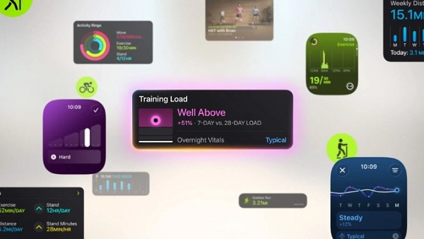 Trên watchOS 26, với tính năng Workout Buddy theo dõi luyện tập từ AI, người dùng có thể theo dõi sức khỏe toàn diện như nhịp tim, tốc độ, lịch sử tập luyện,…đồng thời đưa ra lời động viên bằng giọng nói tương tự như huấn luyện viên Fitness+ giúp mang đến trải nghiệm luyện tập như được kèm cặp thực sự.