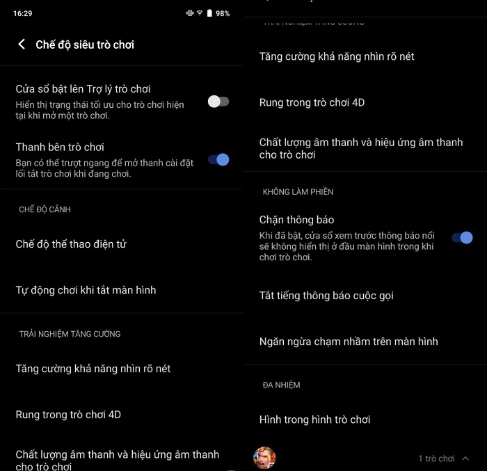 Đây là tính năng tùy biến thông minh trên Vivo X60 Pro giúp ích rất nhiều cho người dùng khi chơi game. Với chế độ ngày việc trải nghiệm game sẽ trơn tru và không bị làm phiền. Để cài đặt chế độ siêu trò chơi bạn chỉ cần vào “Cài đặt” -> chọn “Chế độ siêu trò chơi” -> điều chỉnh các yếu tố theo nhu cầu sử dụng.