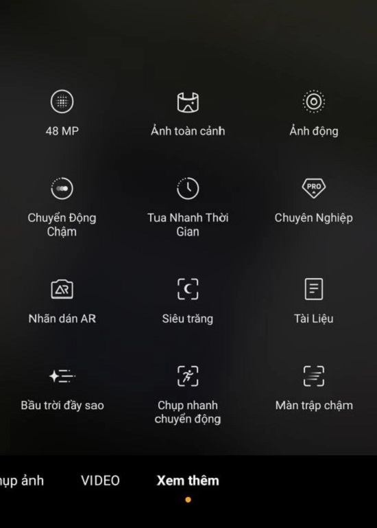 Để cài đặt bạn mở camera lên -> chọn vào “Xem thêm ” và sau đó chọn 1 trong 2 chế độ để chụp ảnh. Bên cạnh đó, bạn còn được cung cấp thêm nhiều chế độ khác để chụp ảnh.