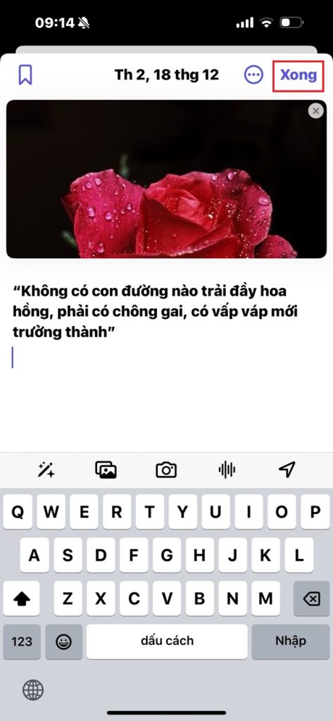 Sau khi đã hoàn tất bài viết, bạn hãy bấm vào nút Xong để lưu lại và đóng cửa sổ soạn thảo.