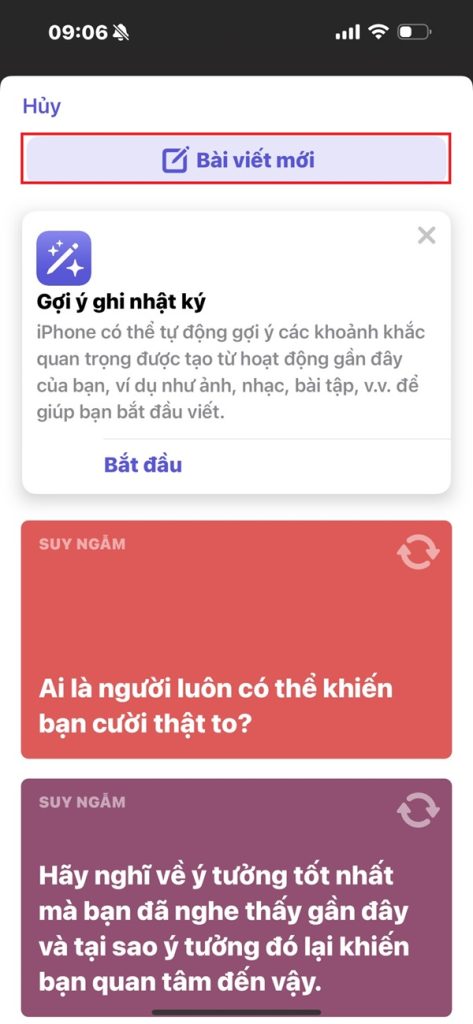 Nhấn vào mục Bài viết mới để bắt đầu viết mội bài nhật ký mới