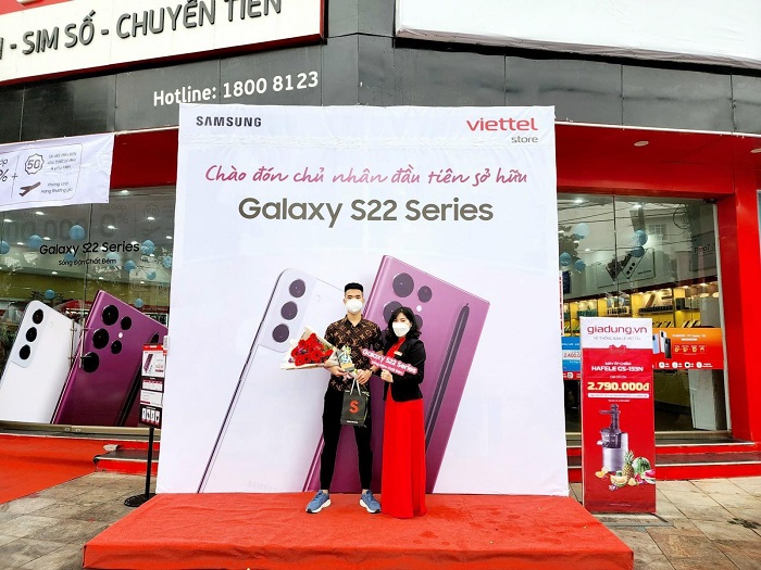 Sáng ngày 04/03, tại các siêu thị Viettel Store trên toàn quốc diễn ra sự kiện trả hàng và mở bán siêu phẩm Galaxy S22 Series. Những chiếc Galaxy S22 series đầu tiên được giao đến tận tay khách hàng cùng loạt ưu đãi hấp dẫn.