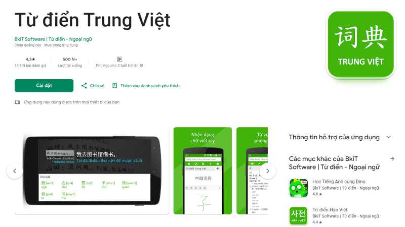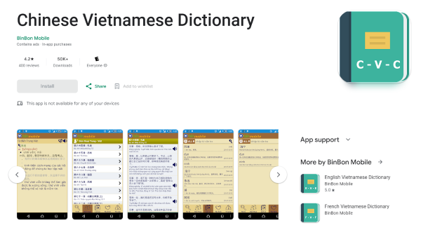 Với ứng dụng Chinese-Vietnamese Dictionary, người học có thể thuận tiện tra cứu từ vựng hoặc dịch đoạn văn giữa hai loại ngôn ngữ một cách tiện lợi. Hệ thống bài học của ứng dụng này được thiết kế đa dạng với nhiều chủ đề khác nhau giúp cho mỗi buổi học trở nên dễ tiếp thu và thú vị hơn.