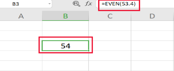 Hàm EVEN là một hàm trả về số được làm tròn lên đến số nguyên chẵn gần nhất.