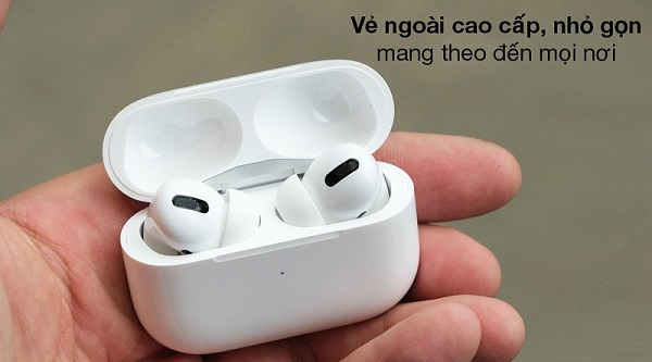 Tai nghe AirPods Pro MLWK3 là một trong số các loại tai nghe Bluetooth sở hữu ngoại hình khá tối giản, với gam màu trắng tươi sáng, cùng trọng lượng chỉ đến 5.4 g vô cùng nhỏ gọn, dễ dàng để mang theo bên mình. Tai nghe được đi kèm với 3 kích cỡ nút tai khác nhau để người dùng có thể lựa chọn được mẫu đeo thoải mái nhất với mình.