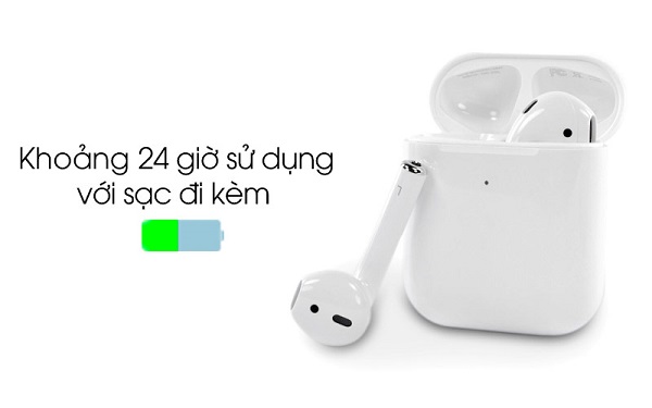Người dùng có thể nghe nhạc với chế độ Spatial Audio với thời gian lên tới 5 tiếng, cùng với 4 tiếng đàm thoại chỉ với 1 lần sạc đầy. Hộp sạc hỗ trợ sạc không dây chuẩn Qi và cổng sạc Lightning giúp người dùng tùy ý lựa chọn.