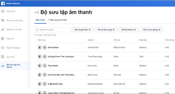 2. Kho nhạc nền video của Facebook