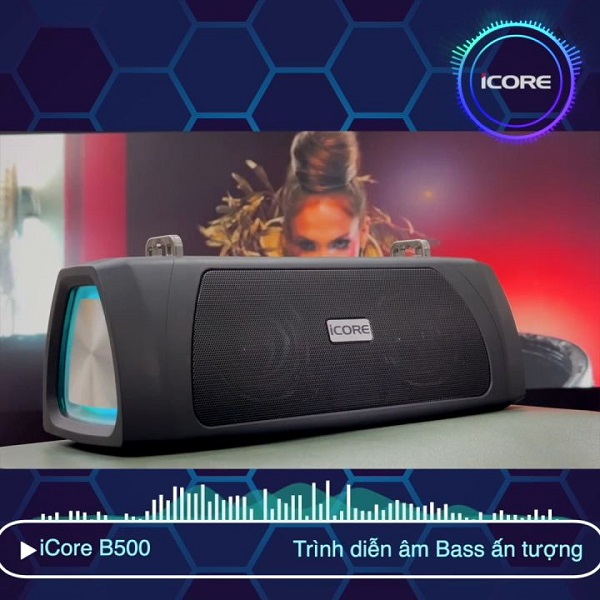 Loa Bluetooth iCore B500 có lối thiết kế với tổng thể màu đen vừa thể hiện được tính sang trọng lại vô cùng ấn tượng. Loa có hai dải đèn LED ở bên cạnh tạo nên điểm nhấn đẹp mắt cho thiết bị.