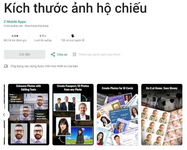 - Hỗ trợ chụp và chỉnh ảnh với các kích thước tiêu chuẩn quy định.