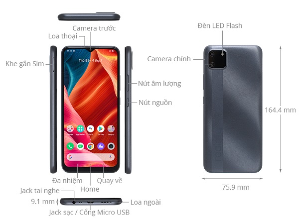- Màn hình: IPS LCD; 6.5 inches; HD+ (720 x 1600 Pixels); Mặt kính 2.5D; Màn hình giọt nước;