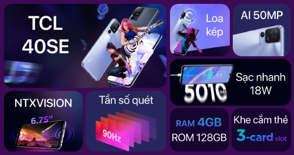 TCL 40SE chinh phục người dùng nhờ dung lượng lưu trữ khủng 256GB, chip MediaTek Helio G37, pin 5010mAh và màn hình lớn 6.75 inch, giúp bạn dễ dàng xem phim, chơi game hoặc lưu trữ dữ liệu mà không lo đầy bộ nhớ. Đây là một trong những chiếc điện thoại có giá trị tốt nhất trong tầm giá.